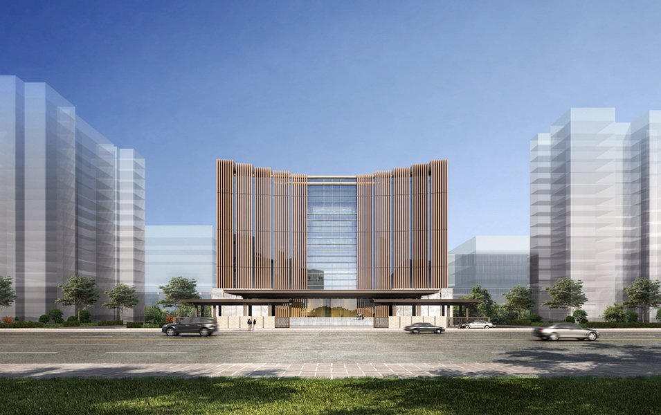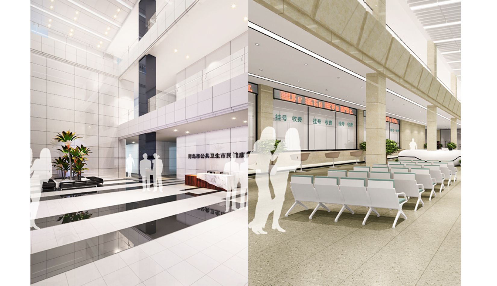 結合周邊的環(huán)境和節(jié)省造價的因素綜合考慮,建筑立面為干凈簡潔的現(xiàn)代風格,臨床中心以橫向線條為主,公共衛(wèi)生中心以豎線條為主,市民健康體驗中心強調建筑的標志性;建筑平面主要解決不同功能的區(qū)域劃分和避免流線交叉的問題。