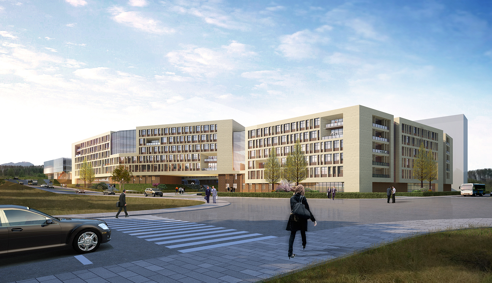 中國海洋大學老校區(qū)建筑為歐式建筑,采用紅瓦坡頂及淡黃色墻面,另有深棕線腳加以點綴。為傳承歷史文脈,強調(diào)文化特色,方案順應西區(qū)生活區(qū)院落圍合布局,立面風格設計為歐式風格,結(jié)合屋頂、墻面及基座等細節(jié)設計,整體風格與海大老建筑協(xié)調(diào)統(tǒng)一。主要出入口處,提取海大典型建筑元素,設計大氣的入口大門形象,與海大老校區(qū)建筑遙相呼應。