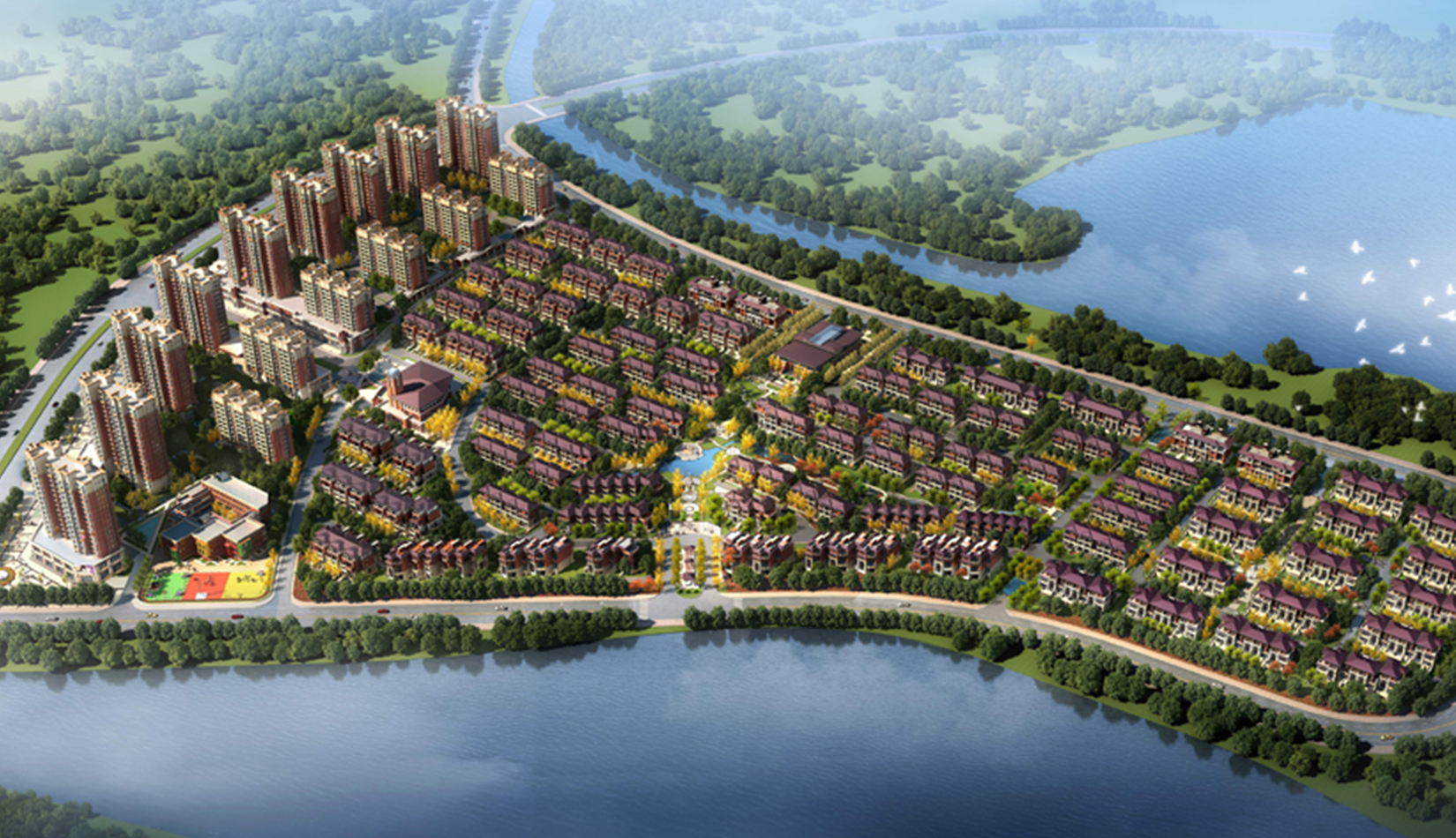空中俯瞰, “一軸、一帶、三組團”構成了一道靚麗的風景線。軸線自北向南貫穿公園綠地和沿河景觀,景觀帶則自西向東橫穿地塊,構成基本空間骨架的同時,在小區(qū)中心交匯成