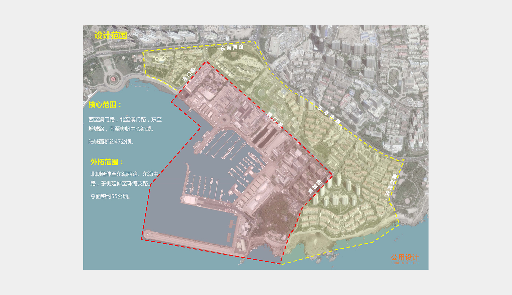設(shè)計(jì)緊緊圍繞“世界水準(zhǔn)、中國氣派、山東風(fēng)格、青島特色”的總體原則,對整個(gè)奧帆中心環(huán)境進(jìn)行整體提升。先期完成本次奧帆中心提升工程整體概念規(guī)劃,規(guī)劃區(qū)域47公頃,外拓研究區(qū)域55公頃。