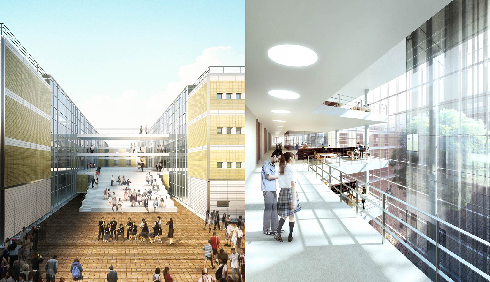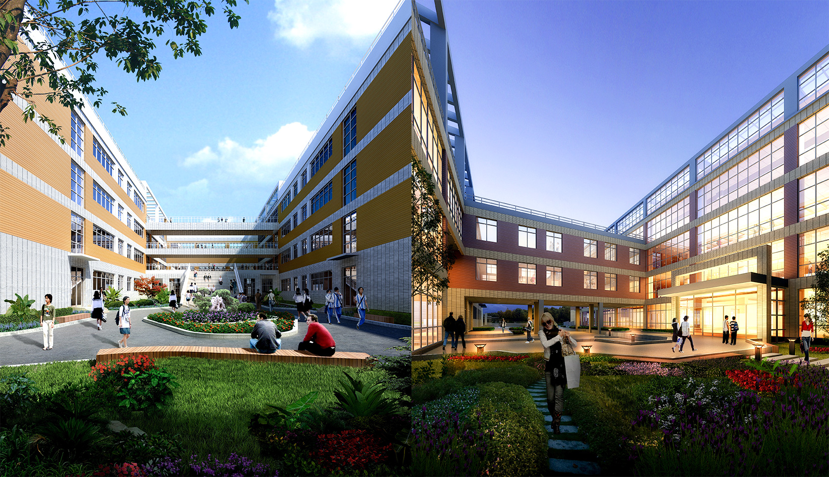 通過對功能、流線的科學(xué)整合與單體建筑的精心設(shè)計,運用現(xiàn)代的建筑語言營造富有強(qiáng)烈時代感的校園環(huán)境,并不斷探索開放、和諧、人文的校園設(shè)計策略,使建筑體現(xiàn)時代特征。