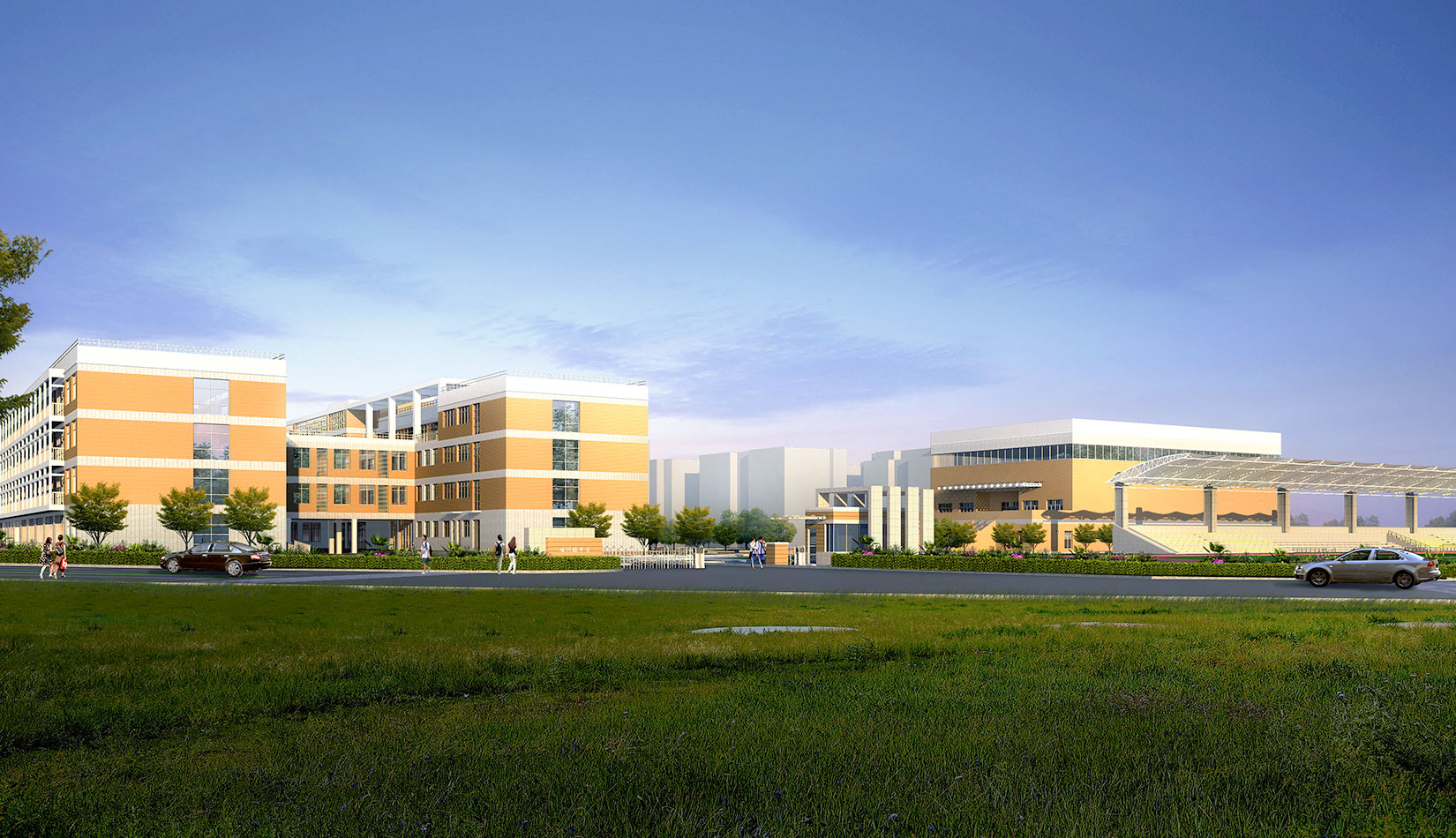 從基地及周邊地區(qū)的城市環(huán)境出發(fā),探索建筑在城市肌理、功能分區(qū)、教育建筑形象等方面的形態(tài)生成因素,力求創(chuàng)造一個鮮明個性、現(xiàn)代、高效、體現(xiàn)教育建筑特色的城市建筑形象,為整個地域帶來嶄新的城市肌理。