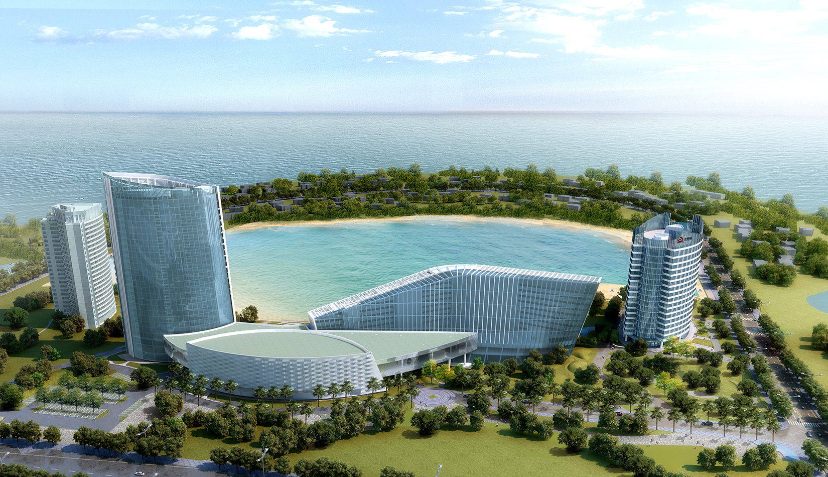項目充分考慮酒店一期建筑及其對空間、道路、周邊環(huán)境的影響,盡量將二期建筑順勢布置,與一期形成完整的有機整體;將局促且形狀不規(guī)則的用地進行合理組織,使建筑、道路、景觀得到恰當?shù)陌才?;與一期建筑相對獨立,又能夠共享景觀、道路等資源,達到使用上的便捷、舒適;在滿足建筑功能及使用的前提下,盡量減少建筑的高度、長度、突出一期的主導地位,是對整個環(huán)境的補充和完善,提升土地價值和環(huán)境品質(zhì)。