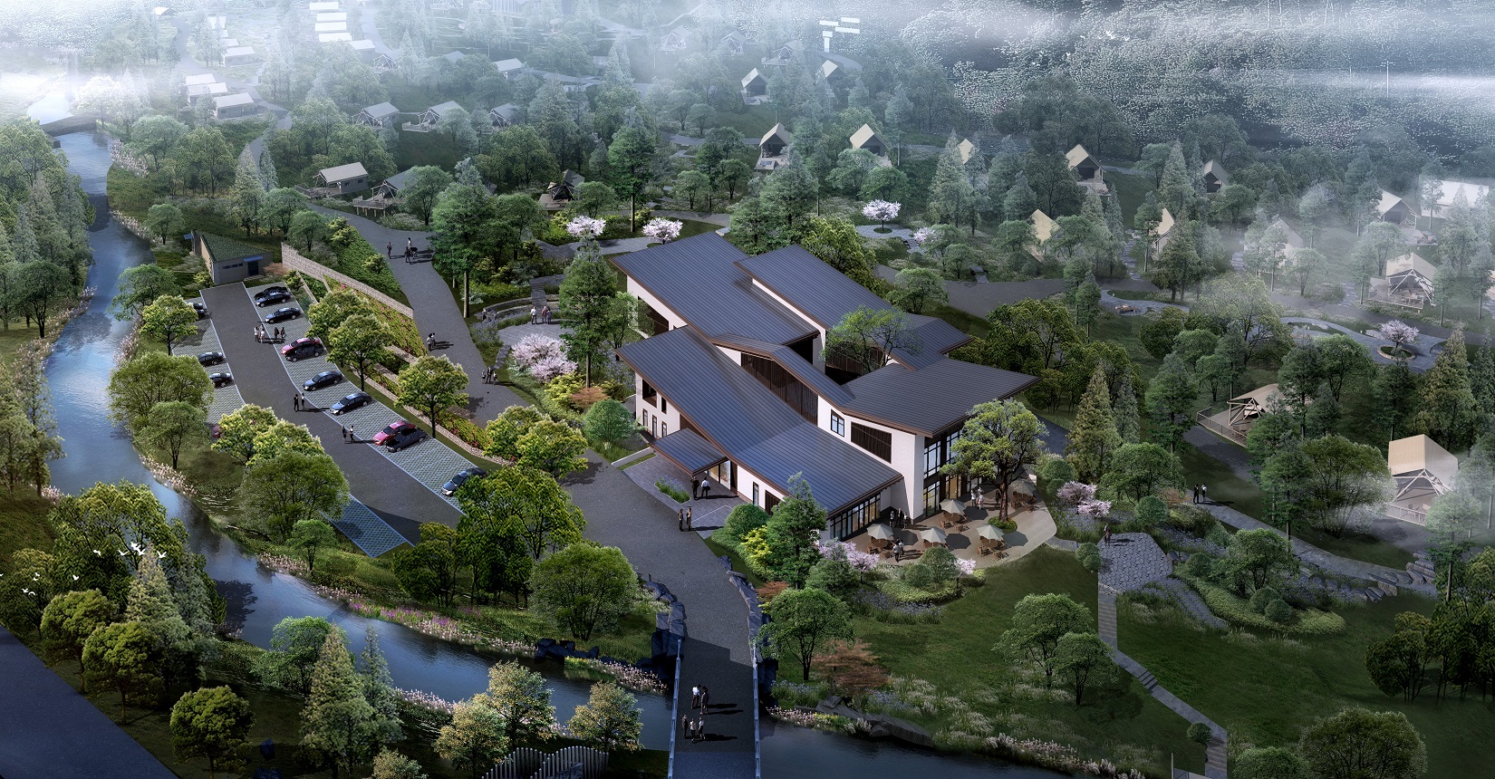 本項目的定位為自然、野奢的景觀風格。對于野奢度假酒店景觀環(huán)境設計遵從“野”“奢”兩點,融入荒野生態(tài)的設計理念,又要與場地相融合、與原生態(tài)相映、與當?shù)氐拿袼罪L情相交匯,突出當?shù)氐奈幕黝},強調高品質的自然、野奢度假,從而打造出一個具備個性與特色,使游客能夠享受到自然野趣體驗的景觀環(huán)境。